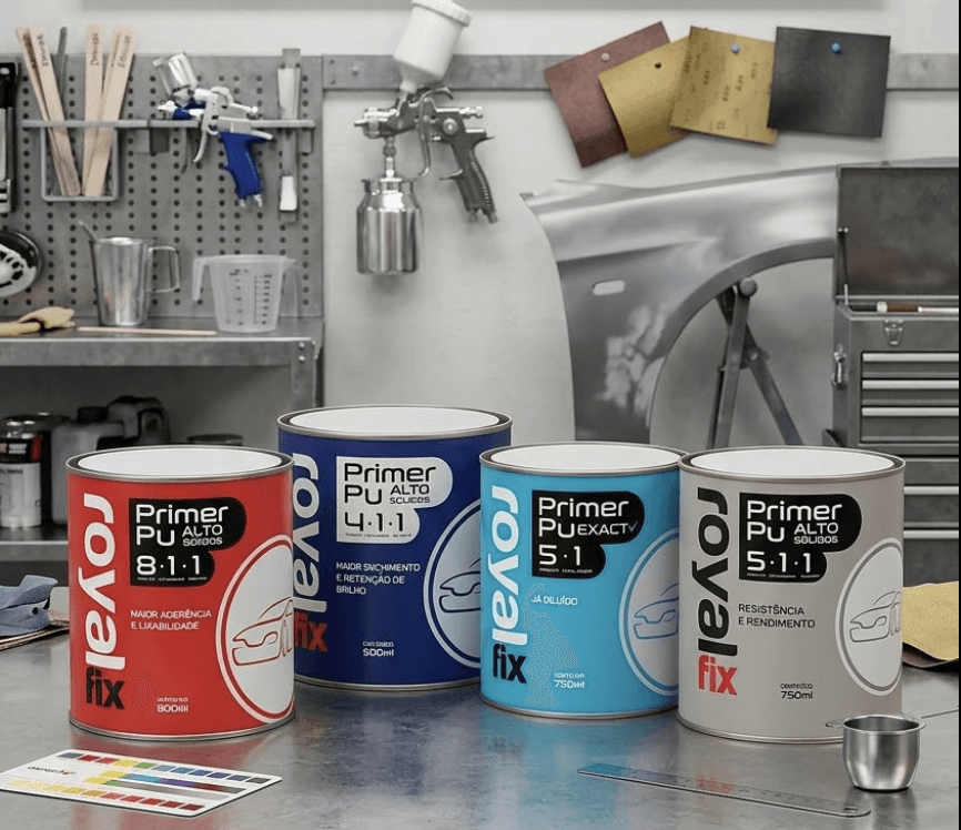 A Royal Fix tem uma linha completa de primers PU para diferentes perfis de uso e exigência técnica. Entender as diferenças entre cada versão ajuda a escolher o produto certo para cada trabalho.